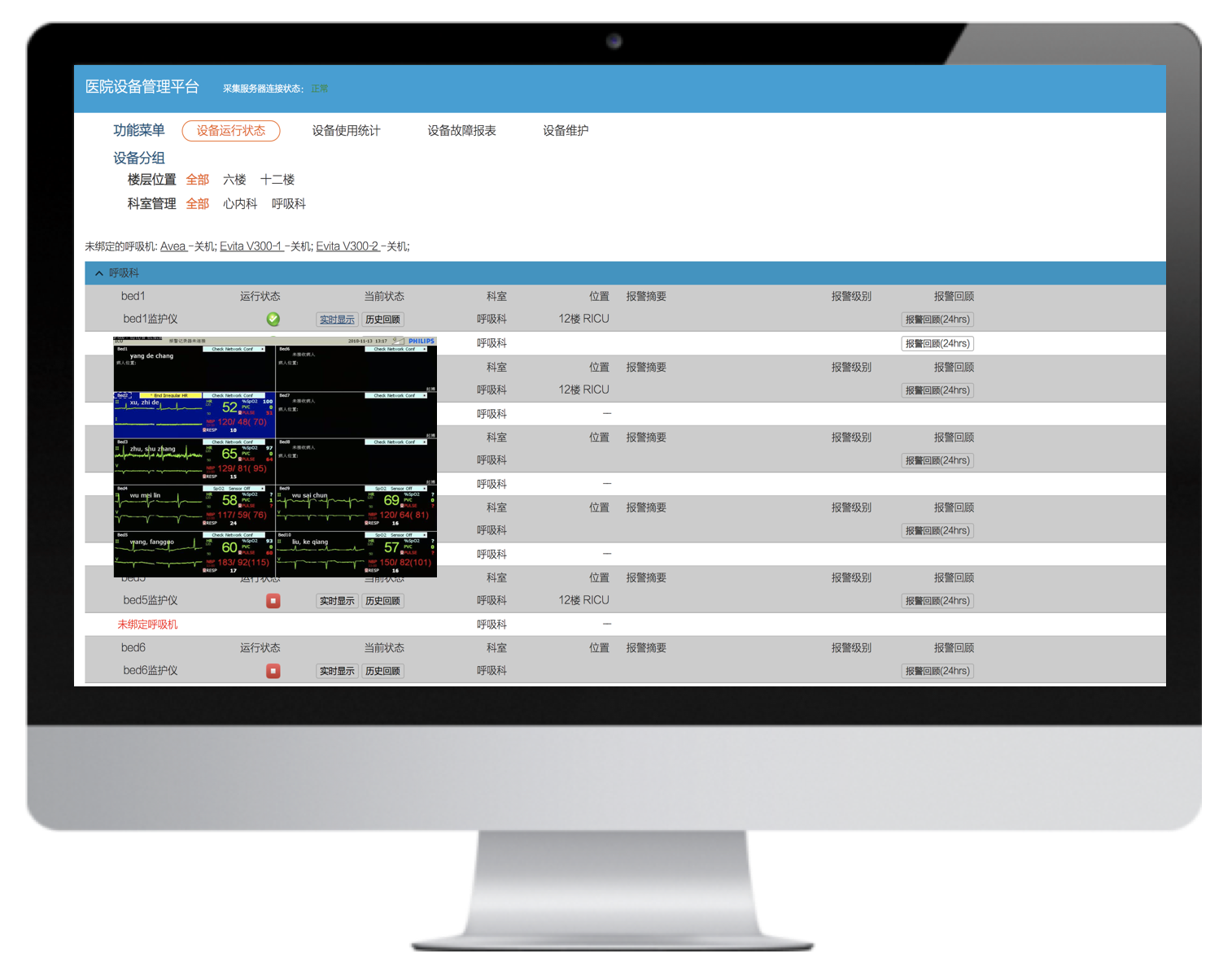 病床綁定、患者體征實時監(jiān)護、精確告警、告警響應(yīng)處置等