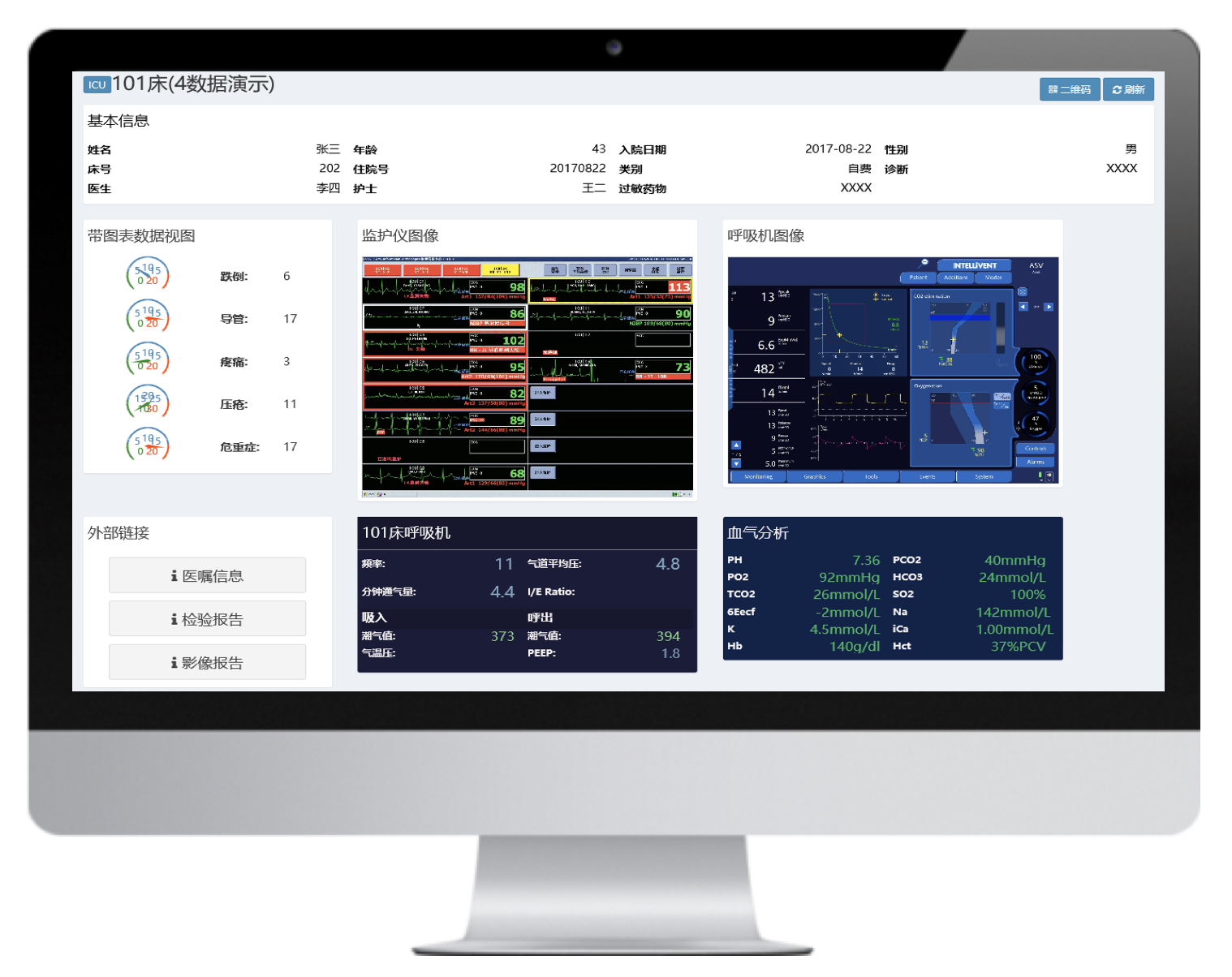 實時呈現(xiàn)病人體征參數(shù)、變化趨勢,診療設(shè)備參數(shù),同時接入醫(yī)囑、檢驗結(jié)果數(shù)據(jù),一體化呈現(xiàn)存儲和回溯,方便醫(yī)護急救、會診、查房
